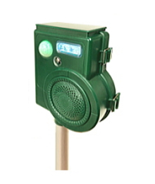 強力な2スピーカー方式!鳥獣が近づかなくても30分ごとに作動するモード搭載。ソーラー充電式。